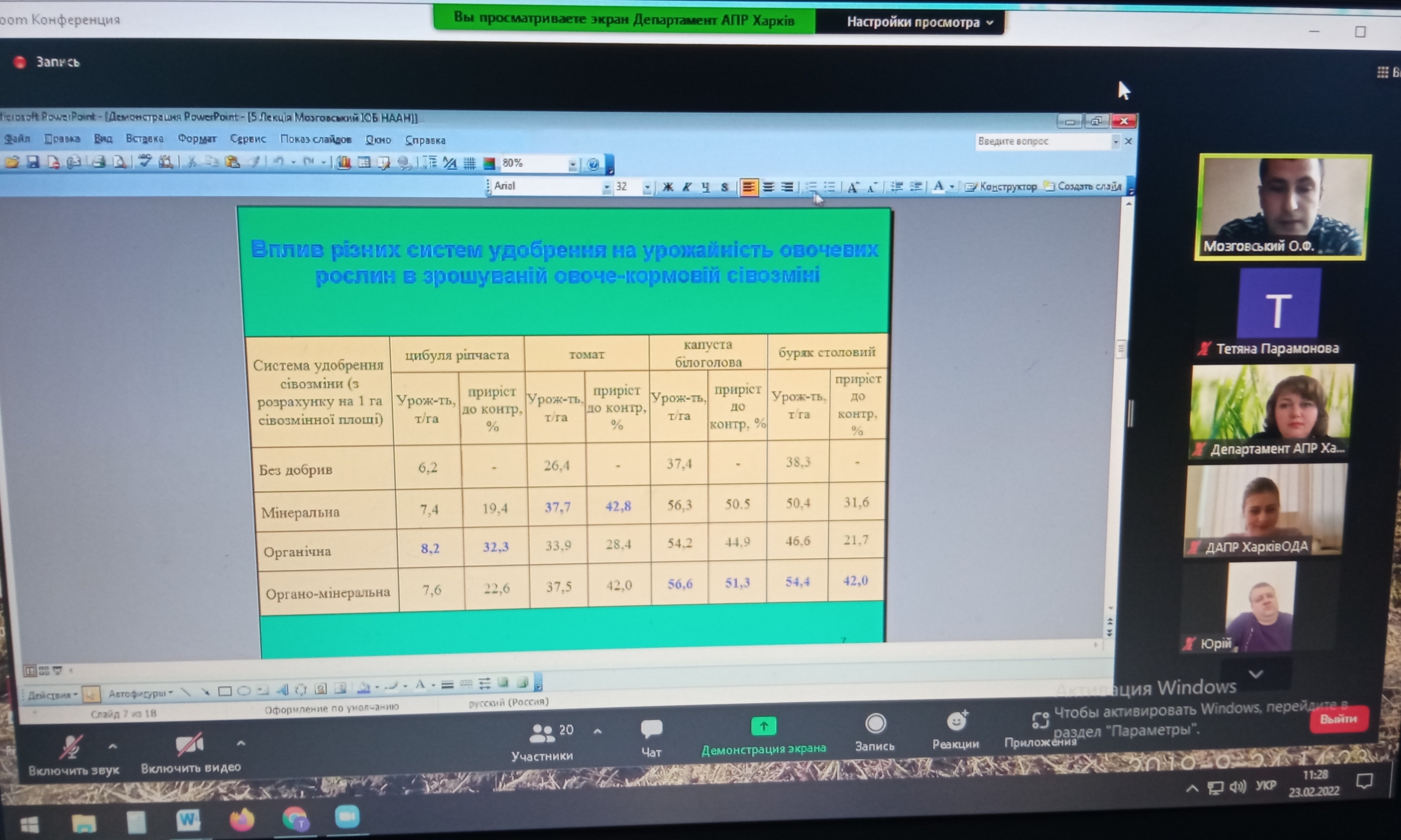Online seminar of the Department of Agro-Industrial Development of the State Administration of Agriculture on plant breeding On February 23, 2022, an online seminar of the Department of Agro-Industrial Development of the Kharkiv Regional State Administration on plant breeding "Innovative solutions in selection and cultivation technologies of agricultural crops" was held in the format of a ZOOM conference for specialists of district state administrations, territorial communities of Kharkiv region, managers and specialists of agricultural formations of the region.