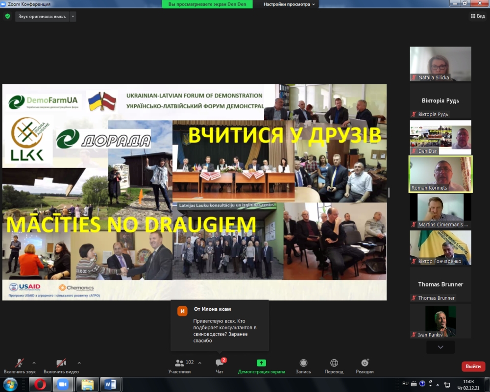 2 грудня 2021 року співробітники Інституту овочівництва і баштанництва НААН Сергієнко О.В., Рудь В.П., Крутько Р.В., Лялюк О. С. прийняли участь в «УКРАЇНСЬКО-ЛАТВІЙСЬКОМУ ФОРУМІ ДЕМОНСТАРЦІЙНИХ ФЕРМ»  у форматі Zoom конференції. У конференції взяли участь представники Національної асоціації сільськогосподарських дорадчих служб України та Програми USAID з аграрного і сільського розвитку (АГРО), керівники українських та латвійських мереж демонстраційних ферм, фермери, сільськогосподарські консультанти, представники органів влади та місцевого самоврядування.