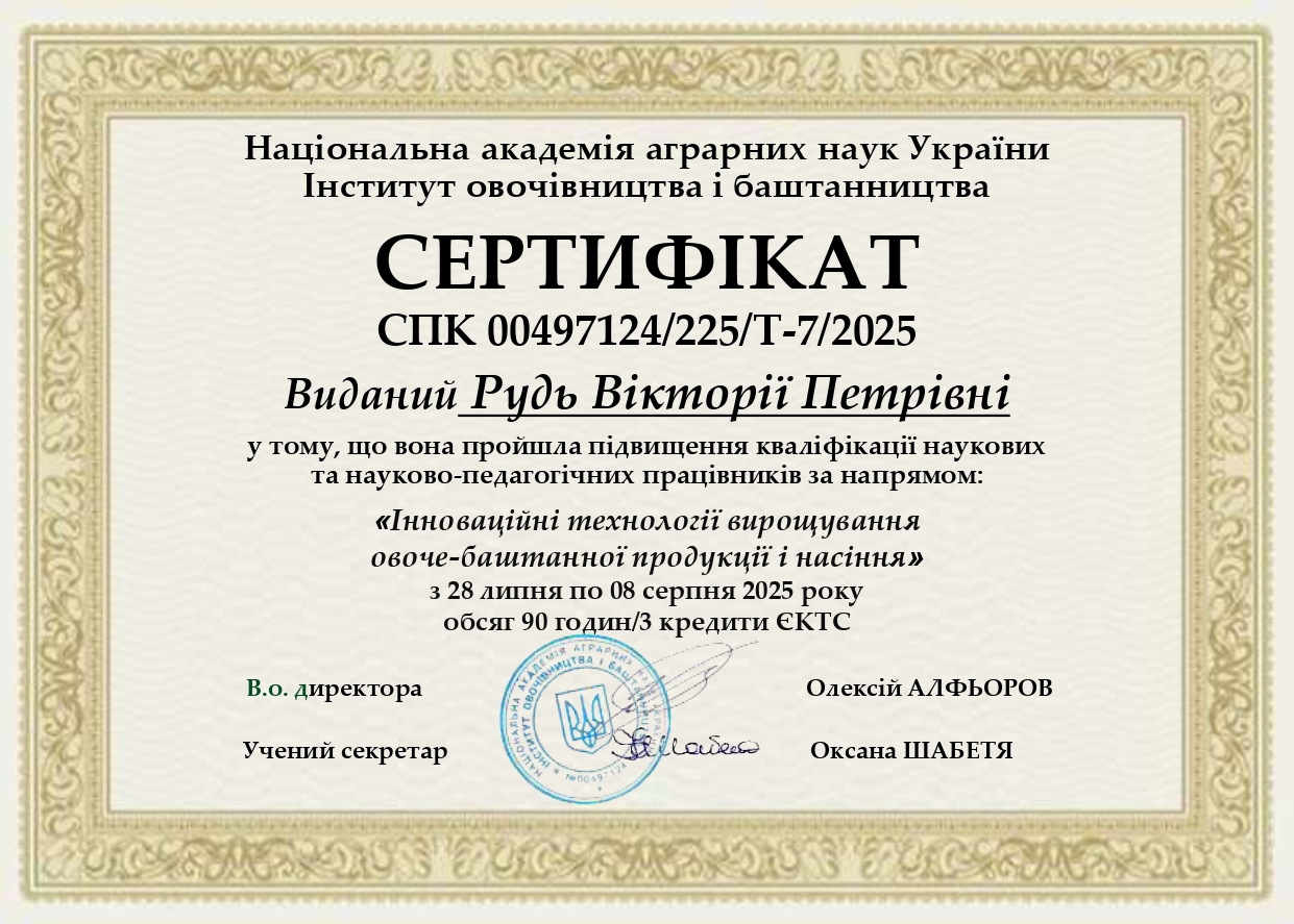 25. Корнієнко С. І., Рудь В. П. Основні положення галузевої комплексно програми «Овочі України – 2020». Овочівництво і баштанництво : міжвідомчий тематичний науковий збірник. 2015. Вип. 61. С. 17-34.