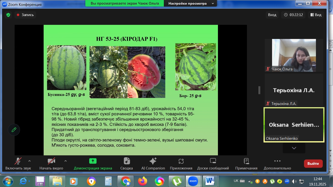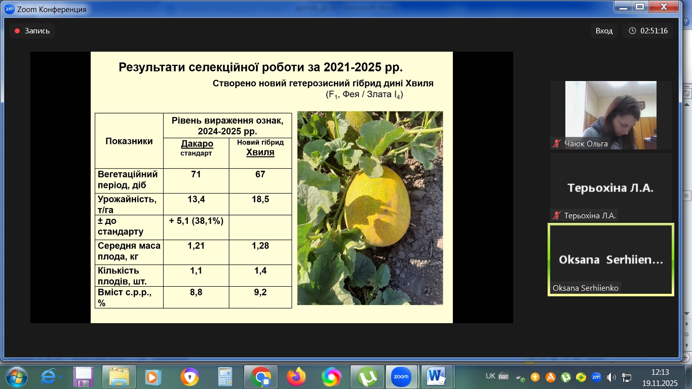 On November 19, 2025, a meeting of the Coordination and Methodological Council of the Institute of Vegetable and Melon Growing of the National Academy of Agrarian Sciences (NAAS) was held. The NAAS is the main institution responsible for implementing PND 20 “Selection and Production Technologies for Vegetable and Melon Crops” “Vegetable and Melon Growing.” Seven institutions are involved in the implementation of the program: