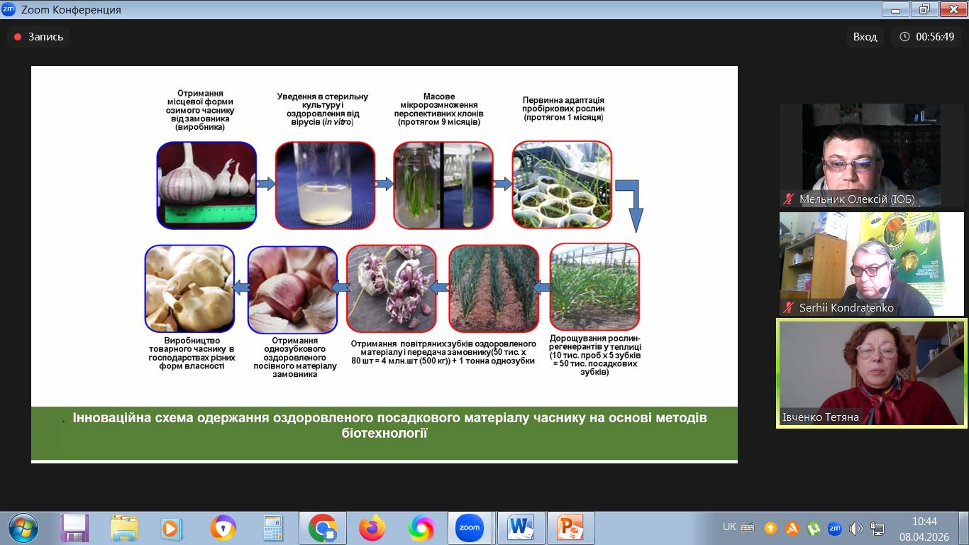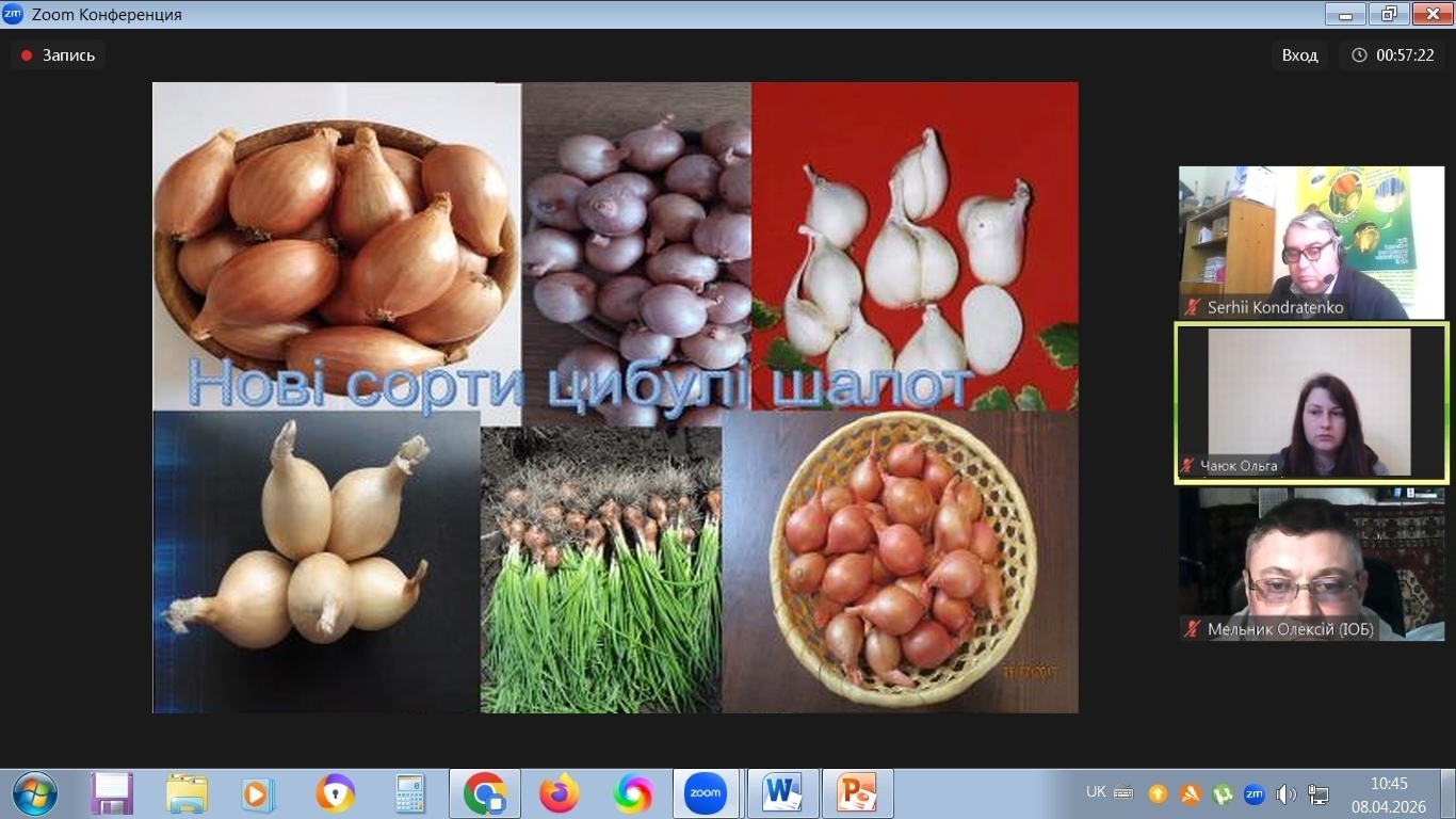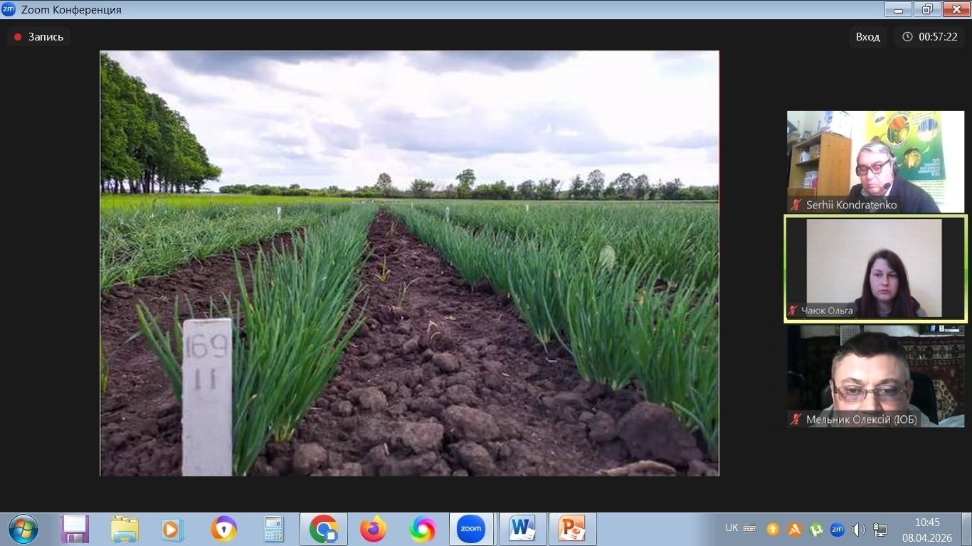 08 квітня 2026 року в Інституті овочівництва і баштанництва НААН відбулася ІХ Міжнародна науково-практична конференція «Теоретичні й практичні аспекти розвитку галузі овочівництва в сучасних умовах» (on-line) за напрямами: застосування сучасних генетико-біотехнологічних та імунологічних методів для прискорення сортової, гетерозисної, трансгресивної та інтрогресивної селекції овочевих видів рослин; інноваційні розробки в селекції овочевих, баштанних і малопоширених культур; інноваційні технології виробництва овочевої продукції й насіння; альтернативні технології вирощування (органічні, ресурсоощадні, біодинамічні); якість та використання продукції овочівництва: функціональність, харчова цінність, безпечність; формування ринку овочевої продукції, проблеми комерціалізації науково-технічних розробок в агропромисловому комплексі.