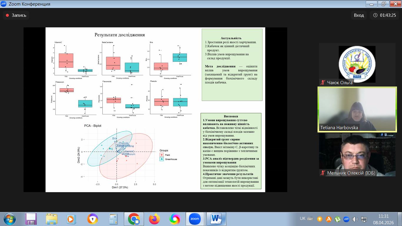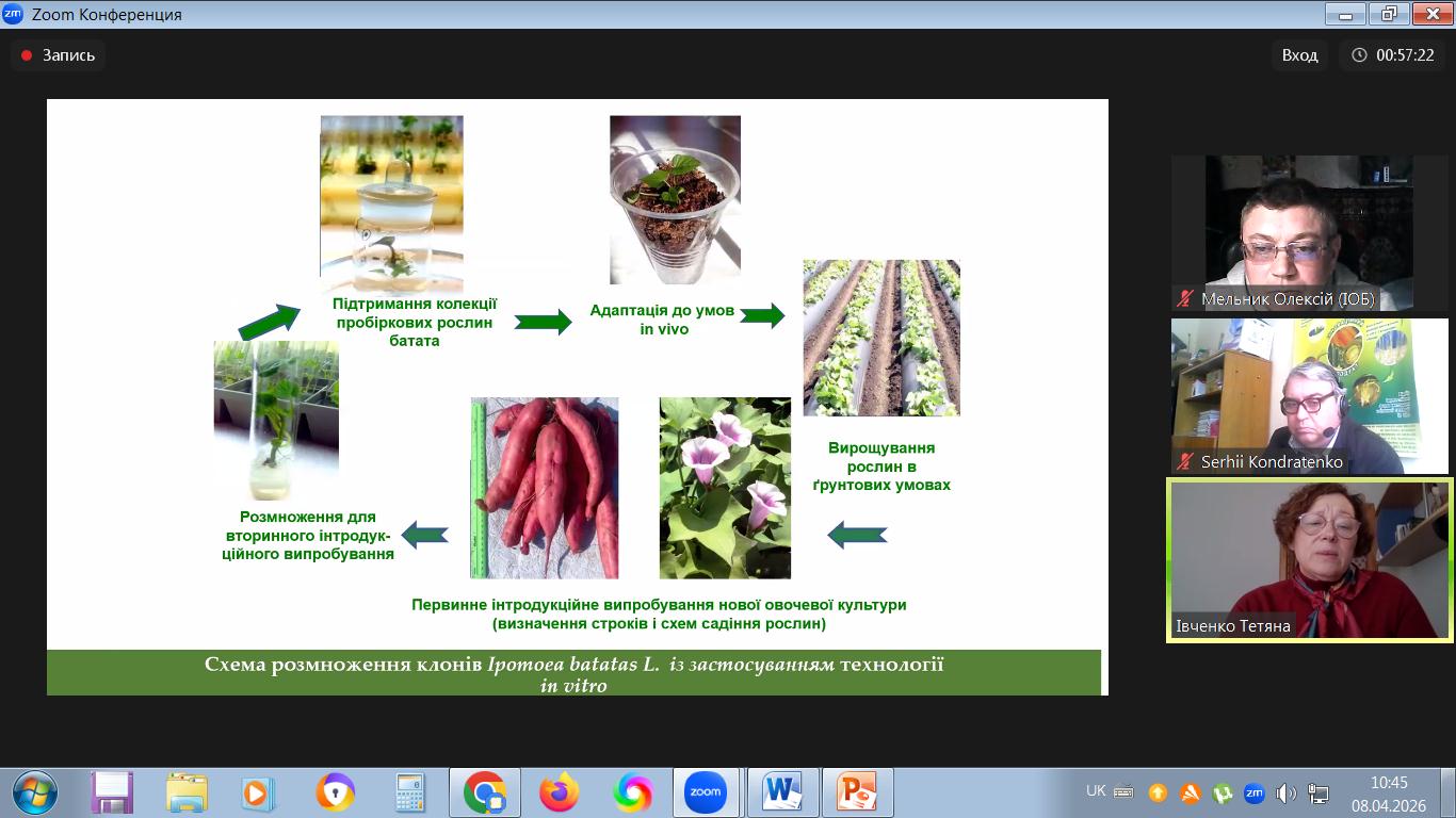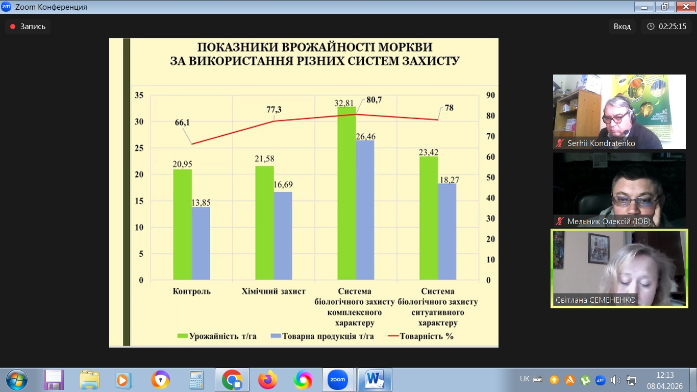 08 квітня 2026 року в Інституті овочівництва і баштанництва НААН відбулася ІХ Міжнародна науково-практична конференція «Теоретичні й практичні аспекти розвитку галузі овочівництва в сучасних умовах» (on-line) за напрямами: застосування сучасних генетико-біотехнологічних та імунологічних методів для прискорення сортової, гетерозисної, трансгресивної та інтрогресивної селекції овочевих видів рослин; інноваційні розробки в селекції овочевих, баштанних і малопоширених культур; інноваційні технології виробництва овочевої продукції й насіння; альтернативні технології вирощування (органічні, ресурсоощадні, біодинамічні); якість та використання продукції овочівництва: функціональність, харчова цінність, безпечність; формування ринку овочевої продукції, проблеми комерціалізації науково-технічних розробок в агропромисловому комплексі.