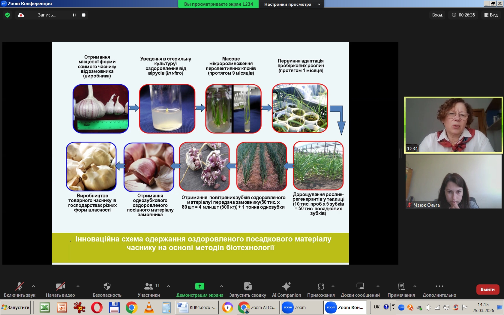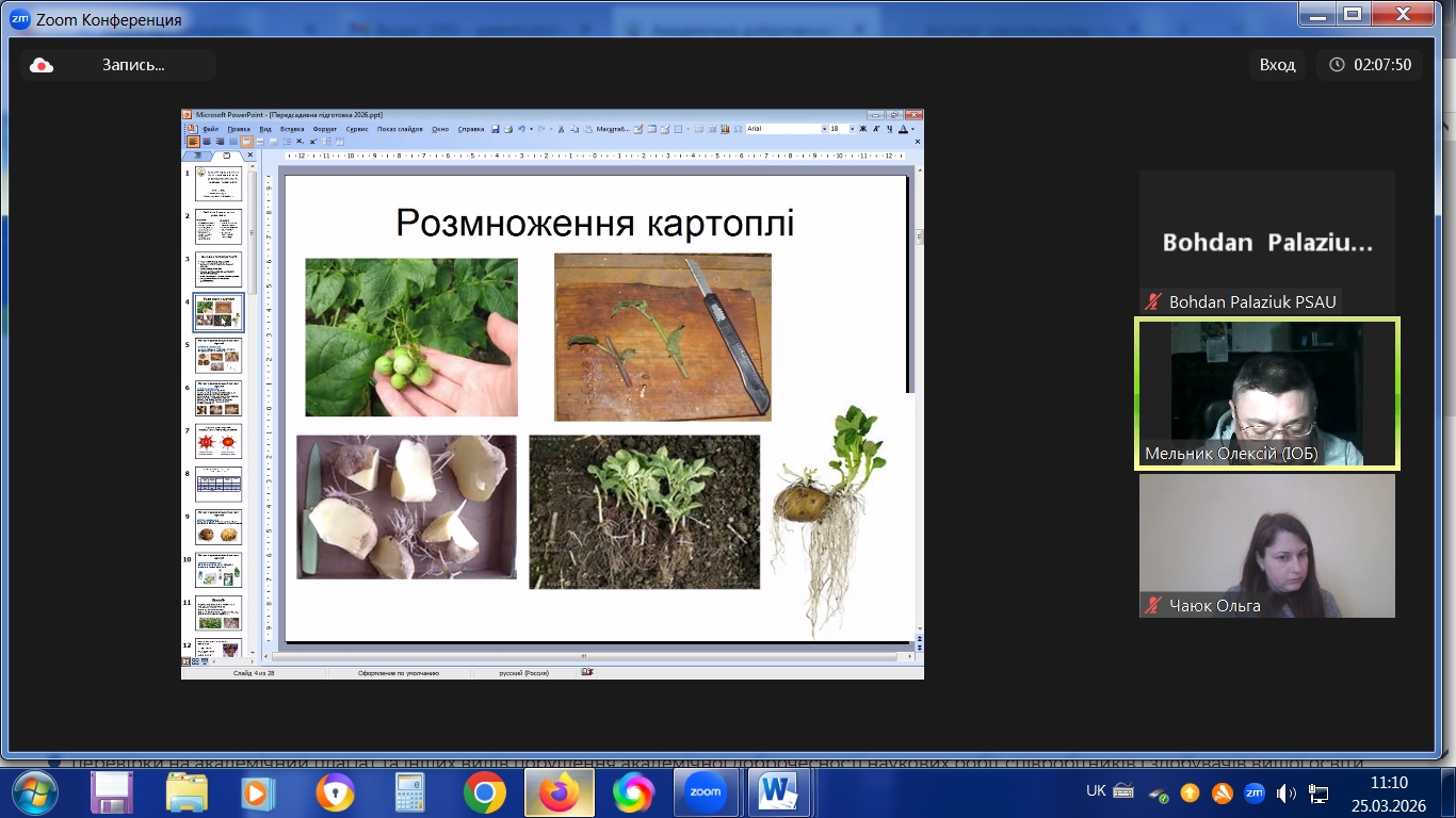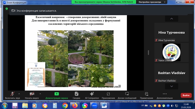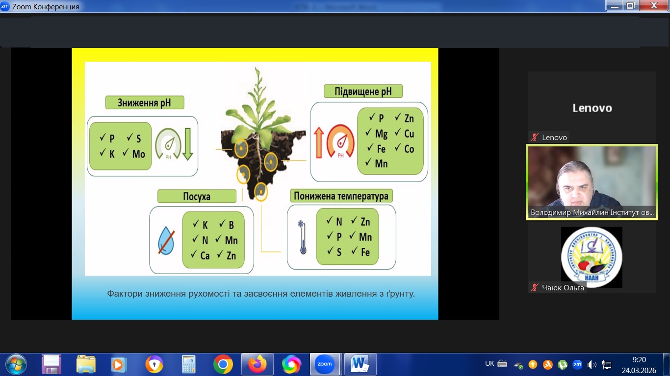 з 23.03.2026 р. по 27.03.2026 р. в режимі online в Інституті овочівництва і баштанництва НААН проходили курси підвищення кваліфікації наукових працівників установ НААН, науково-педагогічних та педагогічних працівників аграрних закладів вищої освіти, наукових співробітників інших установ, докторантів, аспірантів, здобувачів за спеціальністю Н1 – Агрономія, за напрямами: «Сучасні методологічні підходи і методи ведення селекційно-насінницького процесу овочевих і баштанних культур» 30 годин /1 кредит ЕКТS; «Інноваційні технології вирощування овоче-баштанної продукції і насіння» 30 годин /1 кредит ЕКТS.