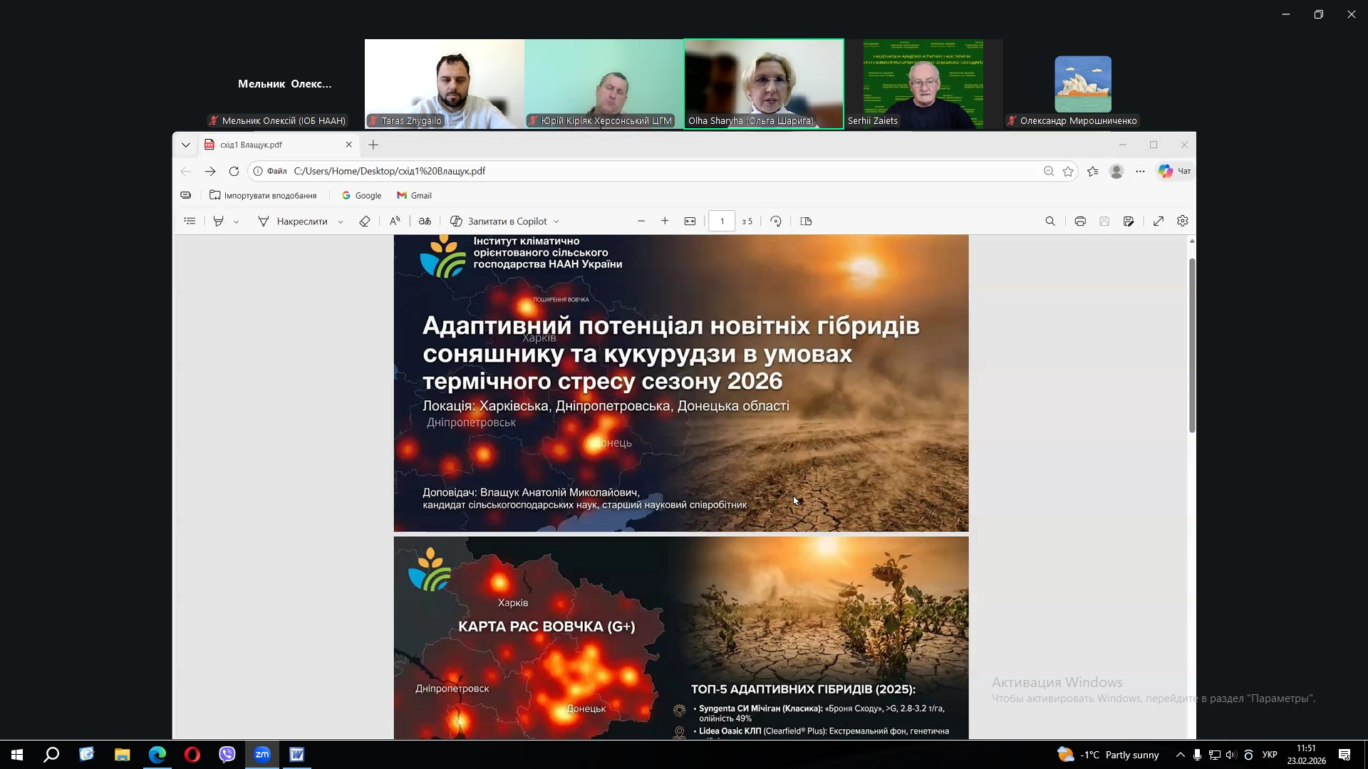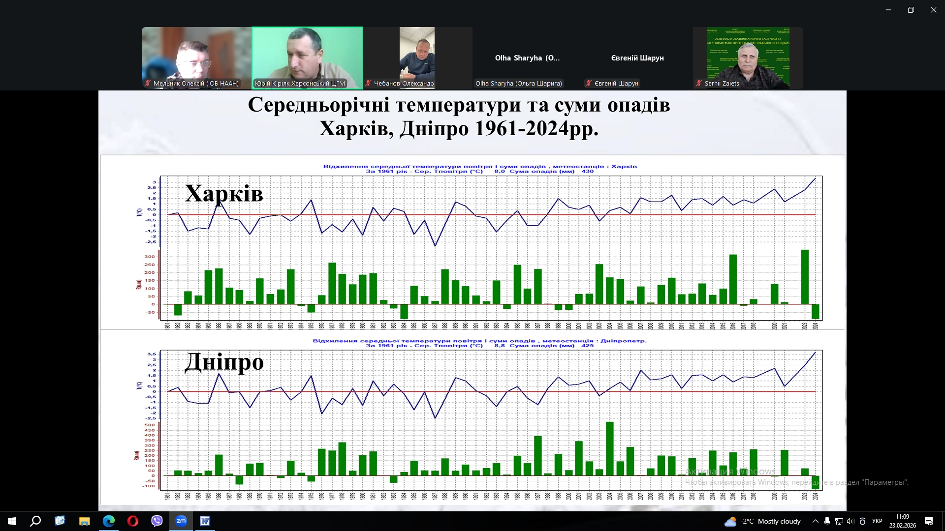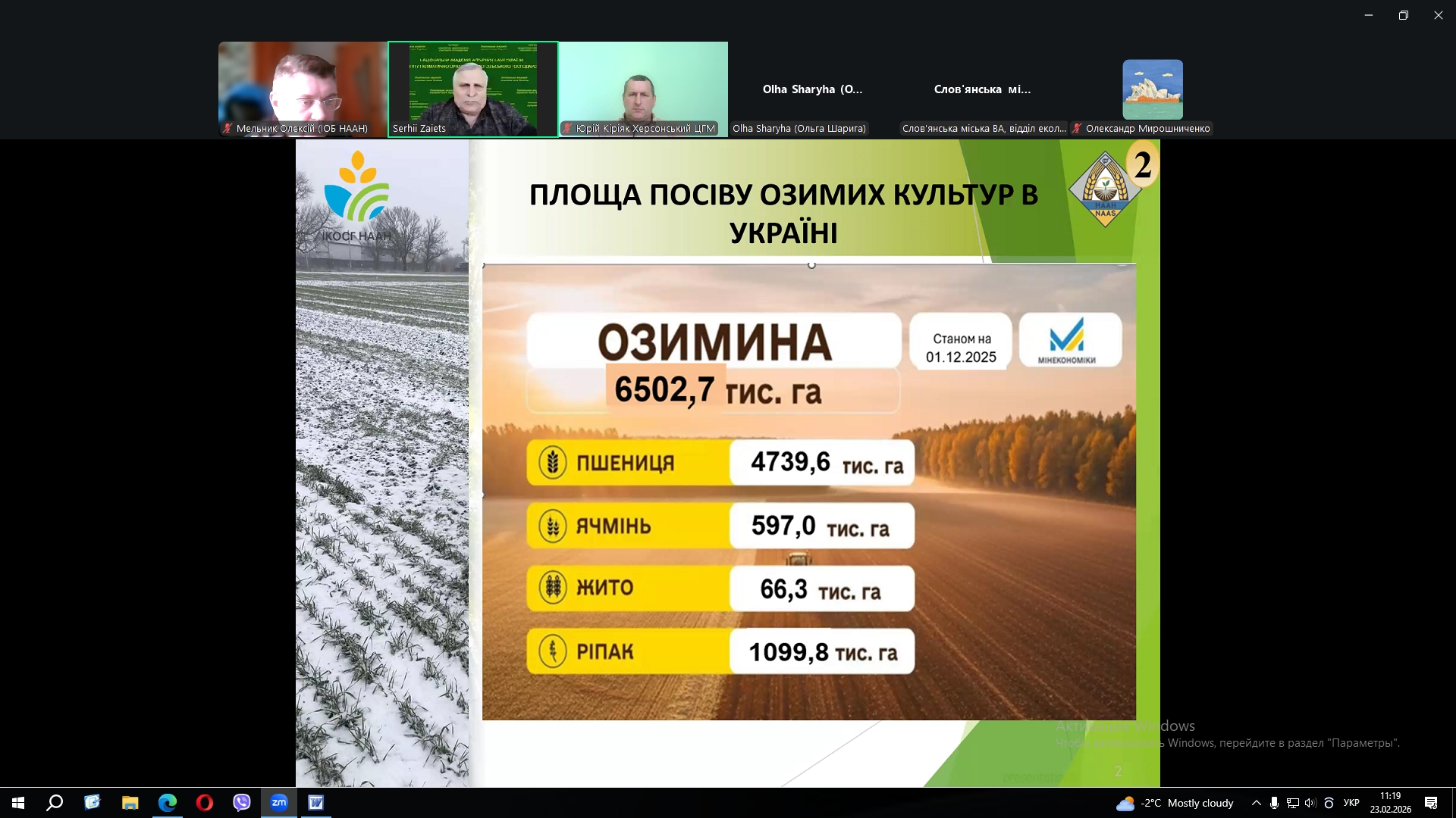 За сприяння Департаменту агропромислового розвитку Харківської обласної державної (військової) адміністрації на виконання листа Міністерства економіки, довкілля та сільського господарства України 23 лютого 2026 року співробітники Інституту овочівництва і баштанництва НААН Мельник О.В. та Рудь В.П. у форматі ZOOM конференції прийняли участь у семінарі на тему: «Шляхи мінімізації наслідків кліматичних змін та впровадження ресурсозберігаючих технологій у сільському господарстві».