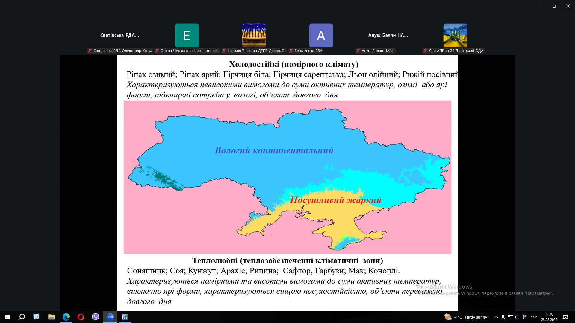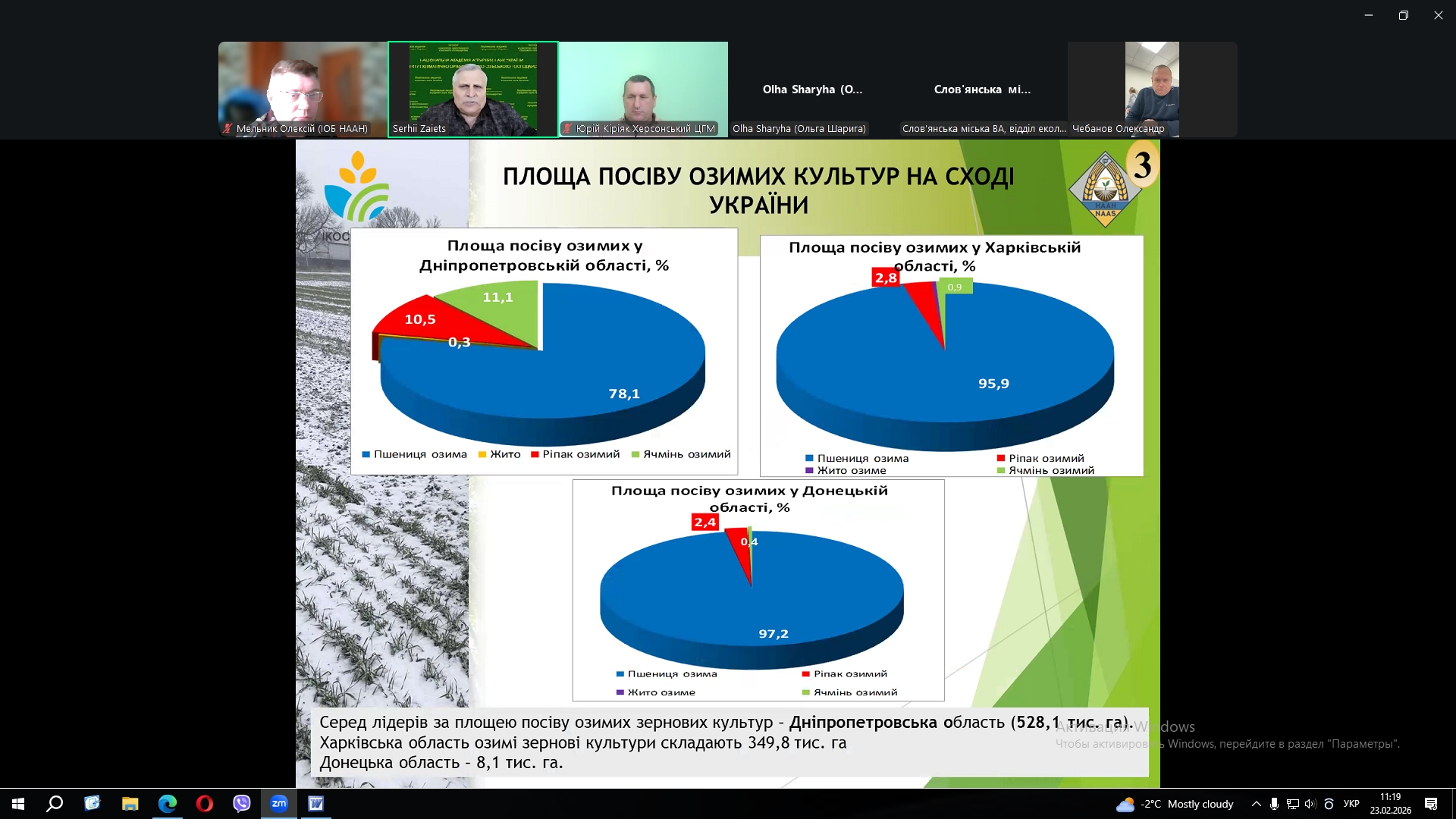 - «Характеристика погодних умов осінньо-зимового періоду 2025-2026 рр. на території Східного регіону та їх вплив на майбутній врожай сільськогосподарських культур 2026 року» (КІРІЯК Юрій Петрович, керівник Херсонського обласного центру з гідрометеорології, кандидат с.-г. наук);