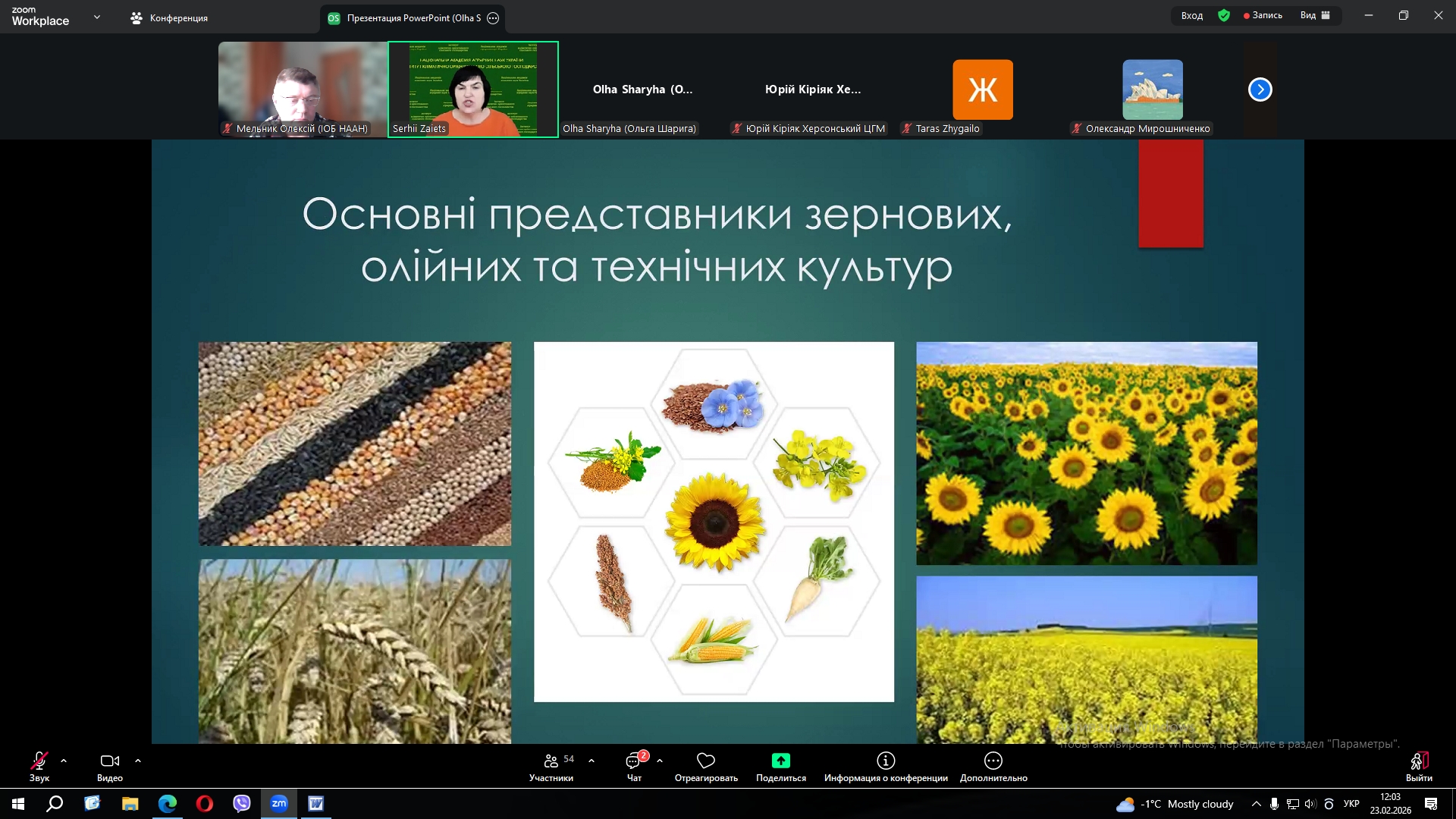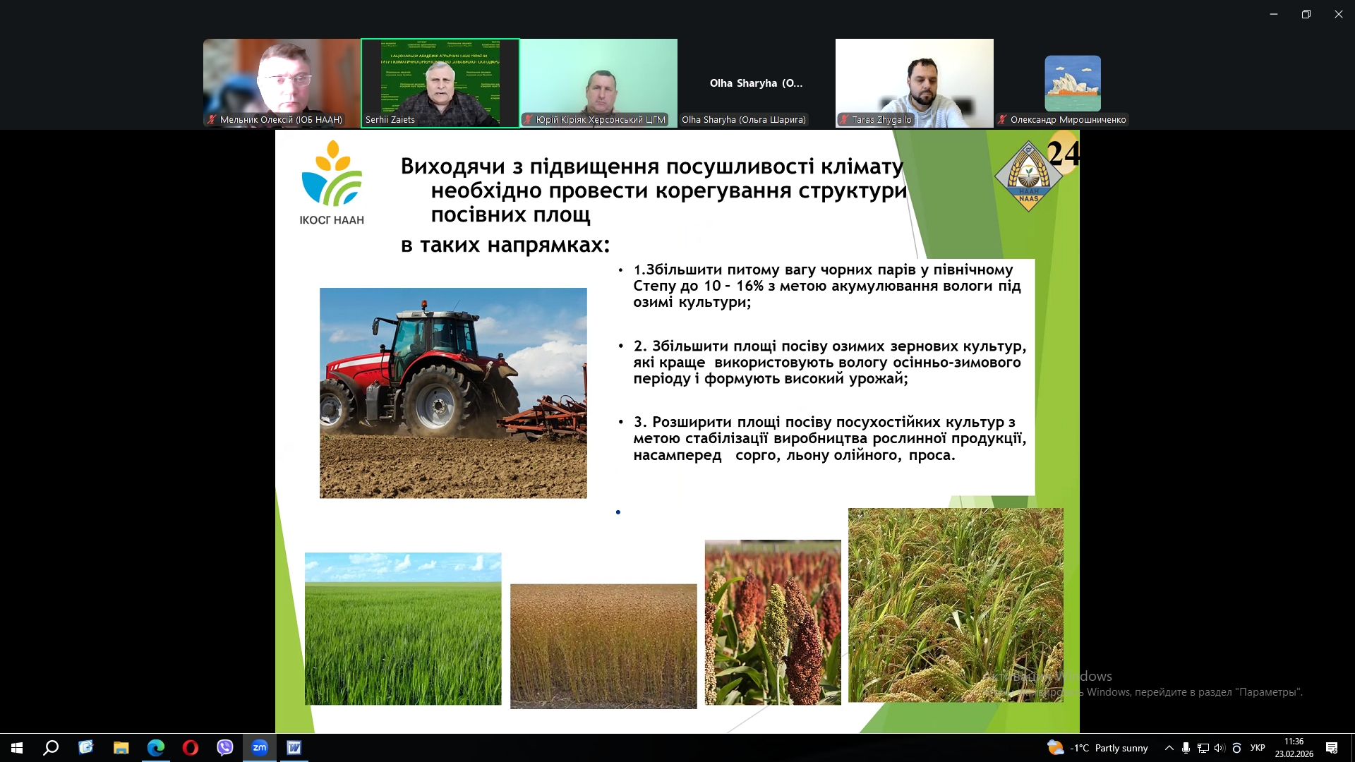 - «Агротехнологічні прийоми догляду за озимими та особливості сівби ярих зернових культур на сході України» (ЗАЄЦЬ Сергій Олександрович, зав. відділом кліматично орієнтованих агротехнологій Інституту кліматично орієнтованого сільського господарства НААН, доктор с.-г. наук, професор);